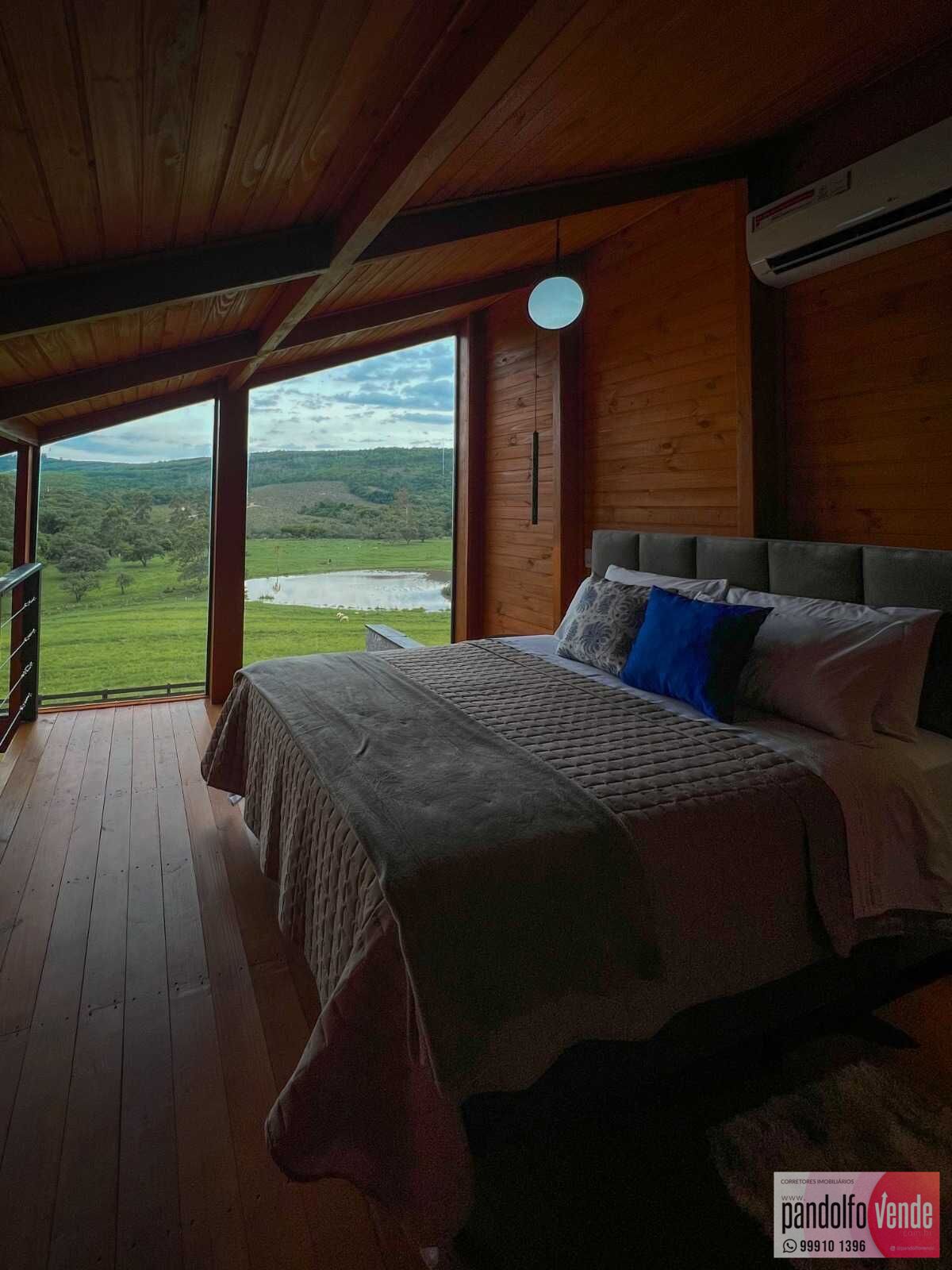 1 dormitório envidraçado ( mezanino) com ar condicionado, cana Queen e belíssima vista para a natureza e açude;